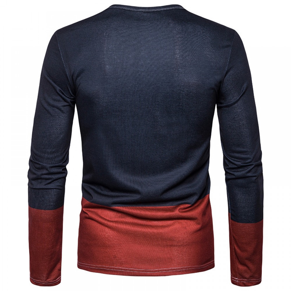 Men's Plus Size Plus Velvet Warm Henley Collar Long-Sleeved T-Shirt Bottoming Shirt