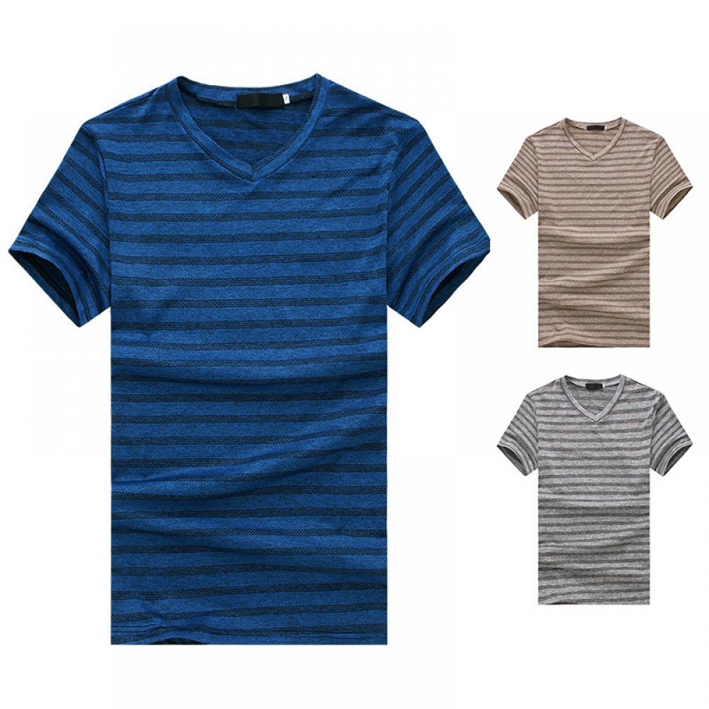 New Men's Striped Stretch Frame Plus Size Short-Sleeved T-Shirt