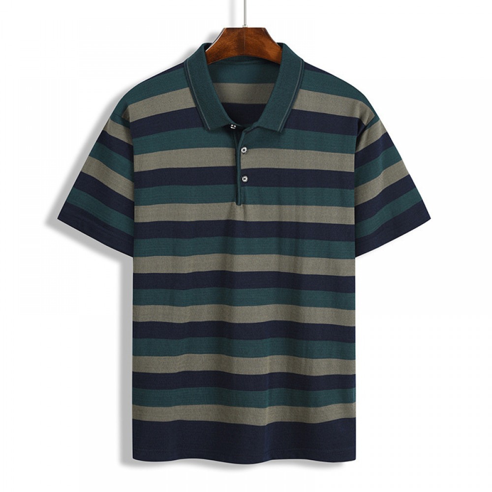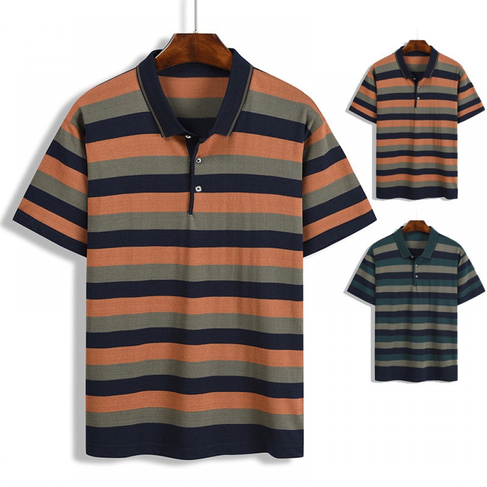 Summer T-Shirt Striped Color Matching Pockets Men's Lapel Short-Sleeved Tops for Men